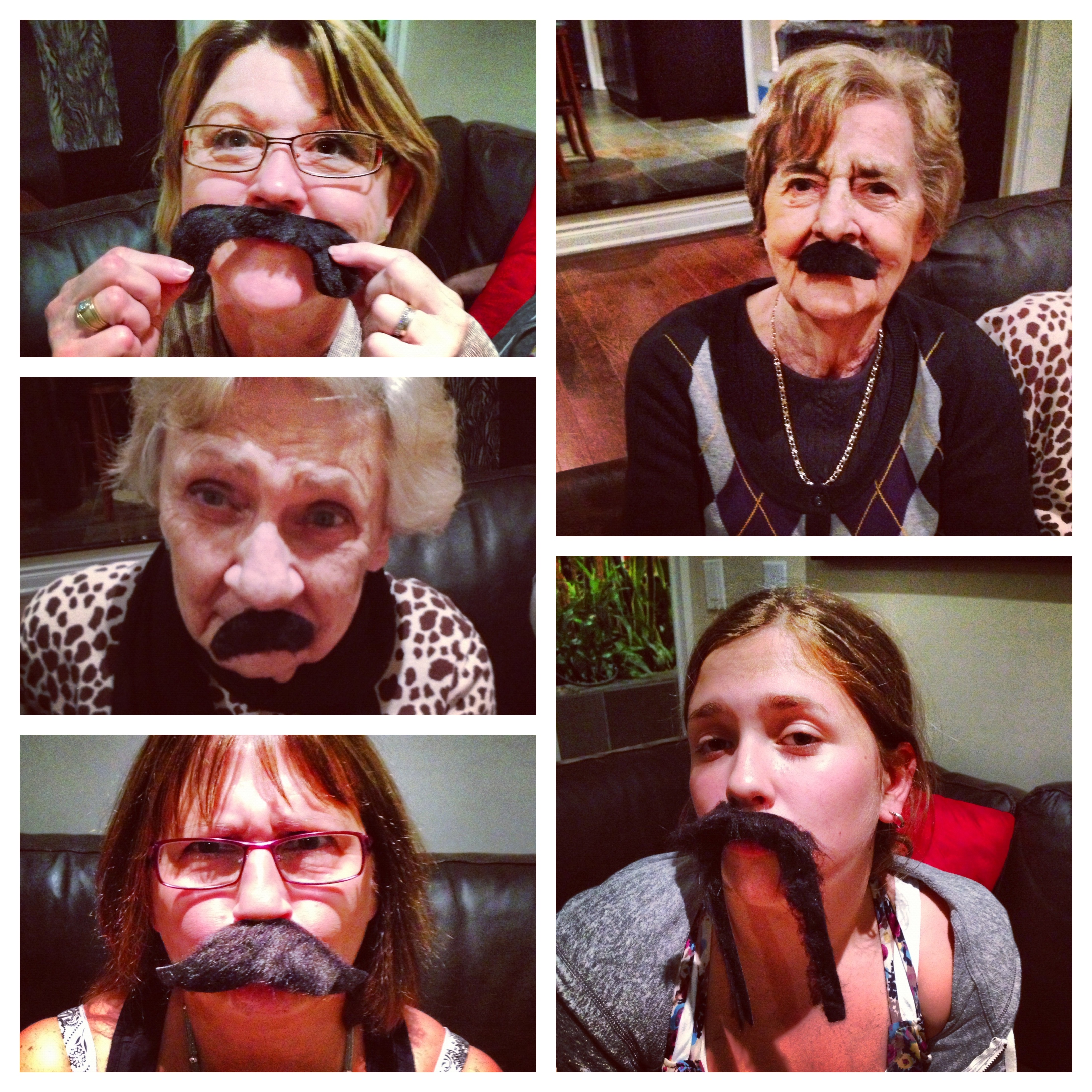 I explain to my grandmother, Val, who is obsessed with Facebook what this moustache thing is all about. My mom, Robyn, (top) and aunt Marsha (bottom) are active supporters of Movember have already jumped on board and supported my campaign. Thanks to my not-so-little cousin Gabi and Ma (Miriam) as well for enthusasitically sporting a mo.